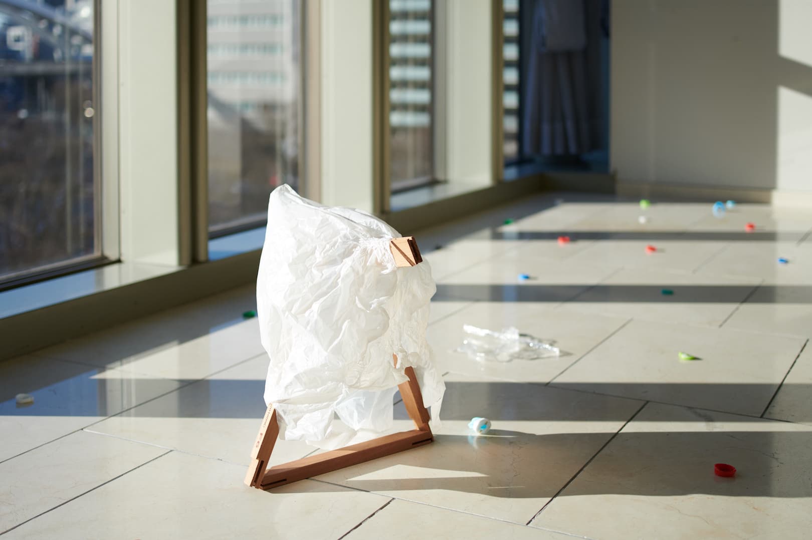 「透明な素材の面白さ」と、「いつのまにか皆んなで作っていたインスタレーション」をテーマにして授業を行いました。